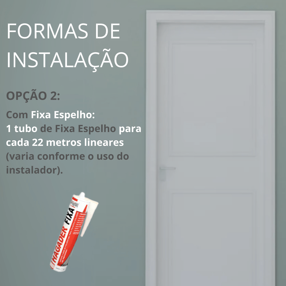 - Recomendação: 1 tubo de Fixa Espelho para cada 22 metros lineares (varia conforme o uso do instalador).