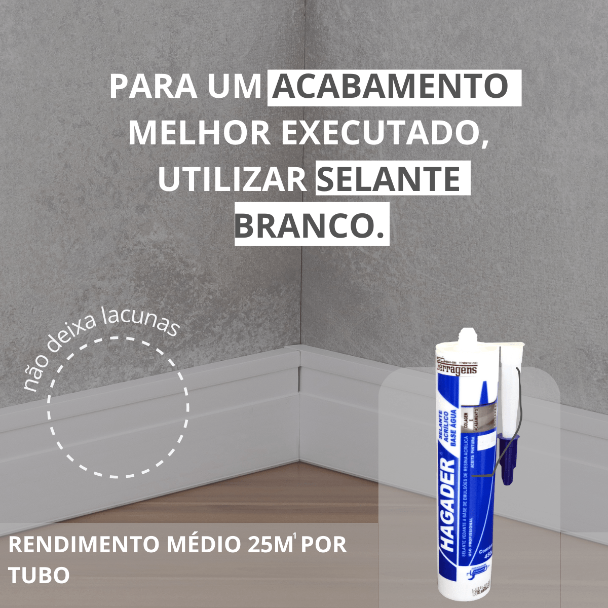 - Para um acabamento melhor executado, utilizar selante branco. O rendimento médio de um tubo é de 25 metros lineares.