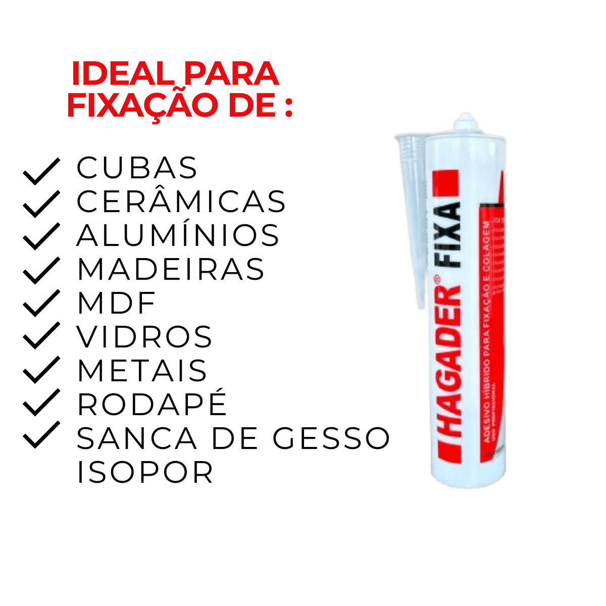 O fixa espelho Hagader proporciona uma excelente fixação e adesão na colagem de espelhos, cubas, cerâmicas, alumínios e entre outros.